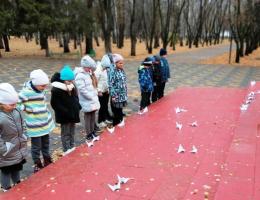 Сотрудники музея, воспитанники военно – патриотического клуба «Гвардеец ДОСААФ», патриотического центра «Пламя», учащиеся и учителя школ №8,10, гимназии «Гармония», школы – интерната, реабилитационного Центра «Огонек», жители нашего города возложили около 500 белых журавликов на Аллее Памяти в городском парке. Журавлики были сделаны детьми, а о празднике Белых журавлей они узнали от учителей и родителей.