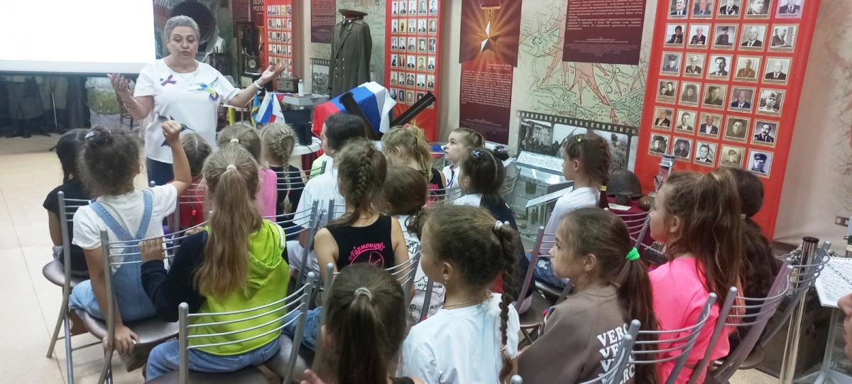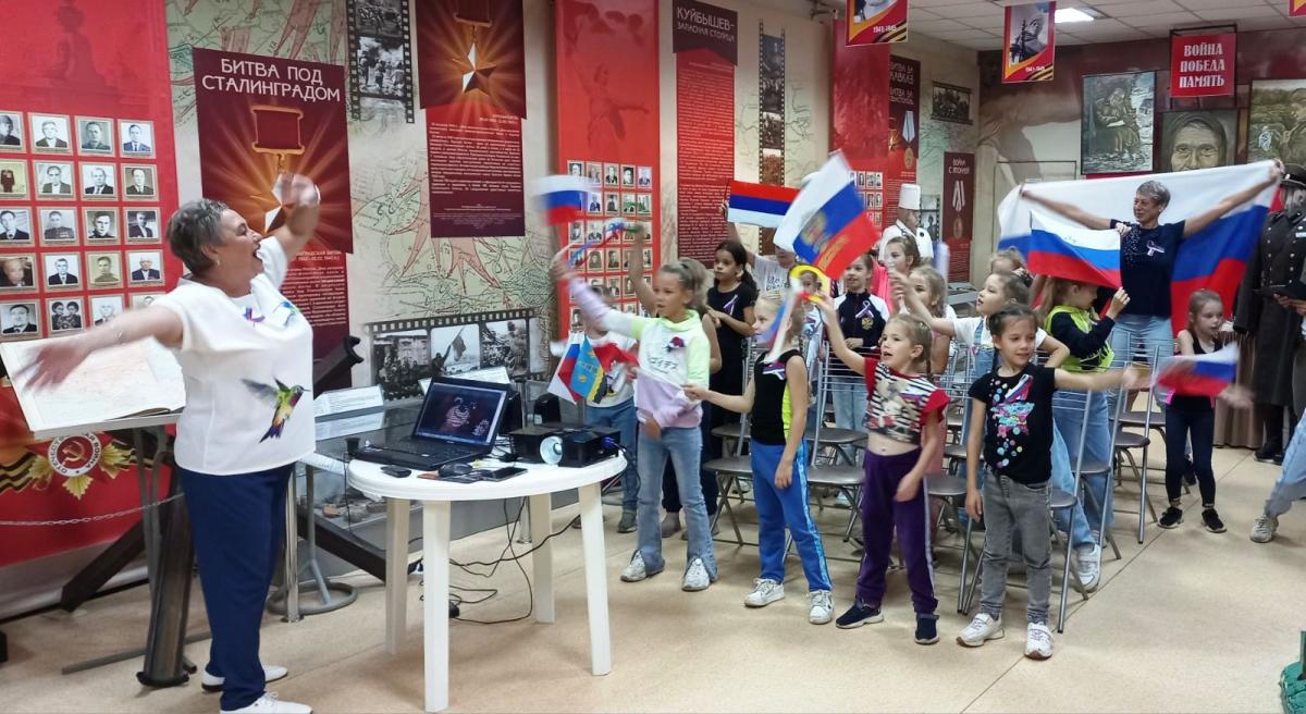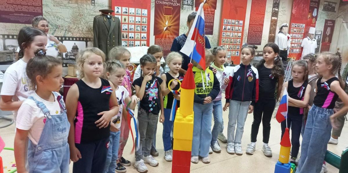 В музее истории города прошли мероприятия, посвящённые Дню рождения Российского флага.  Группа воспитанниц секции «Художественная гимнастика» Детской спортивной школы, отдыхающие в августе месяце в пришкольном оздоровительном лагере, посетили  музей.
