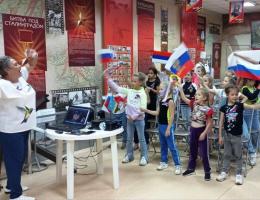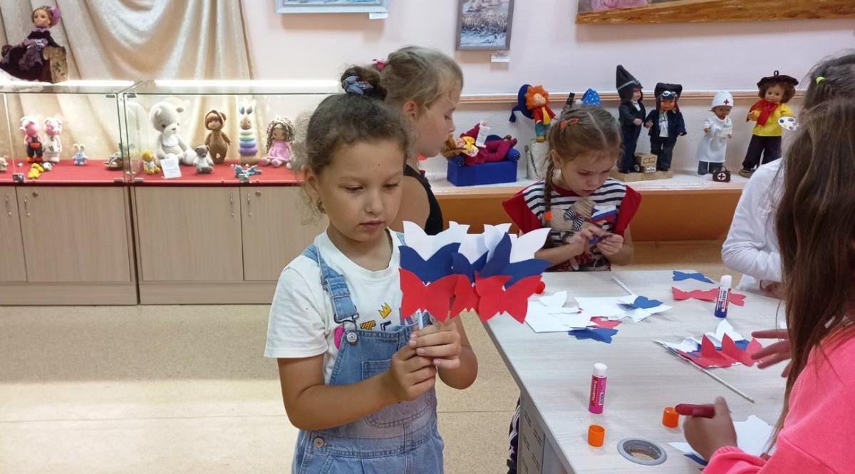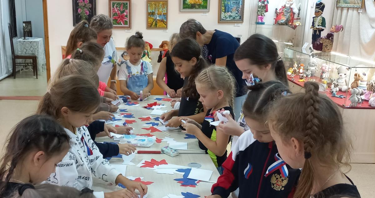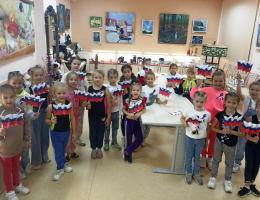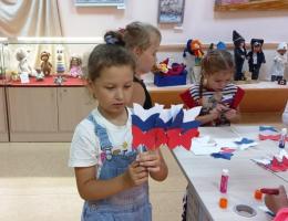 Сотрудники музея подготовили для посетителей мини – выставку «Три цвета Родины». Экскурсовод Марина Юрьевна Наумова провела интересную интерактивную программу «Победы, веры добрый знак - Российский стяг», а в конце мероприятия был мастер – класс «В цвете Российского флага», в котором все дети участвовали с удовольствием.