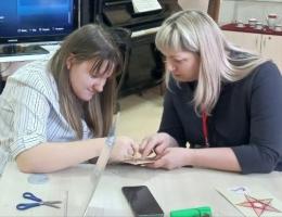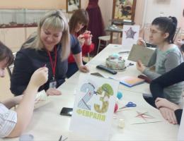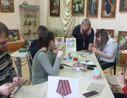 Творческая деятельность мастеров сопровождалась рассказом экскурсовода Писчасовой М.В. о звезде, как главном знаке отличия защитников нашей Родины, основном элементе при обозначении воинских званий и ряде боевых наград, в основу которых положен этот знак.