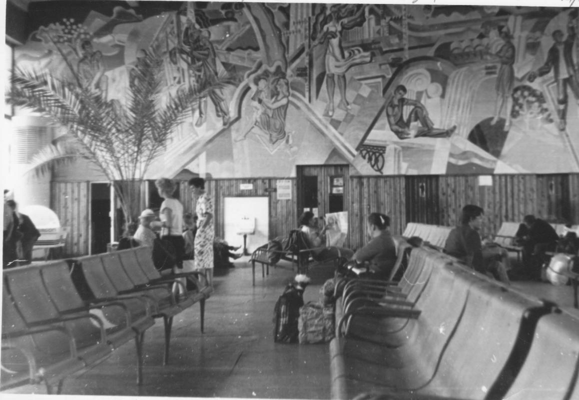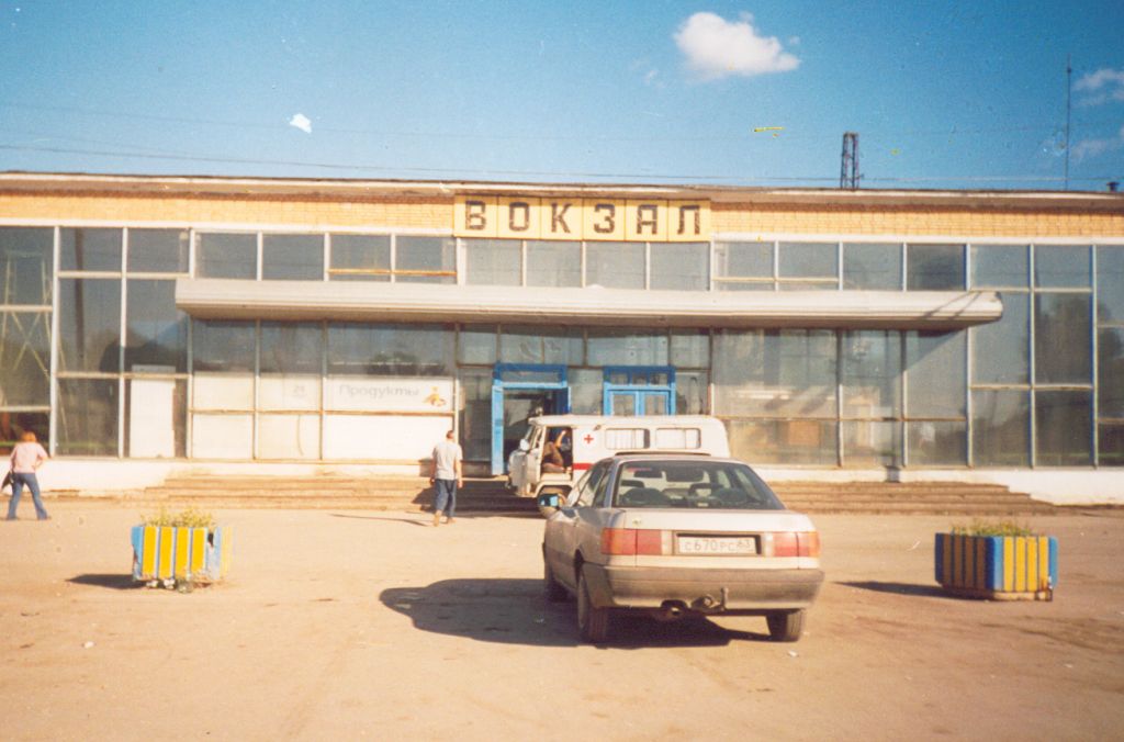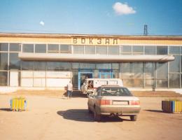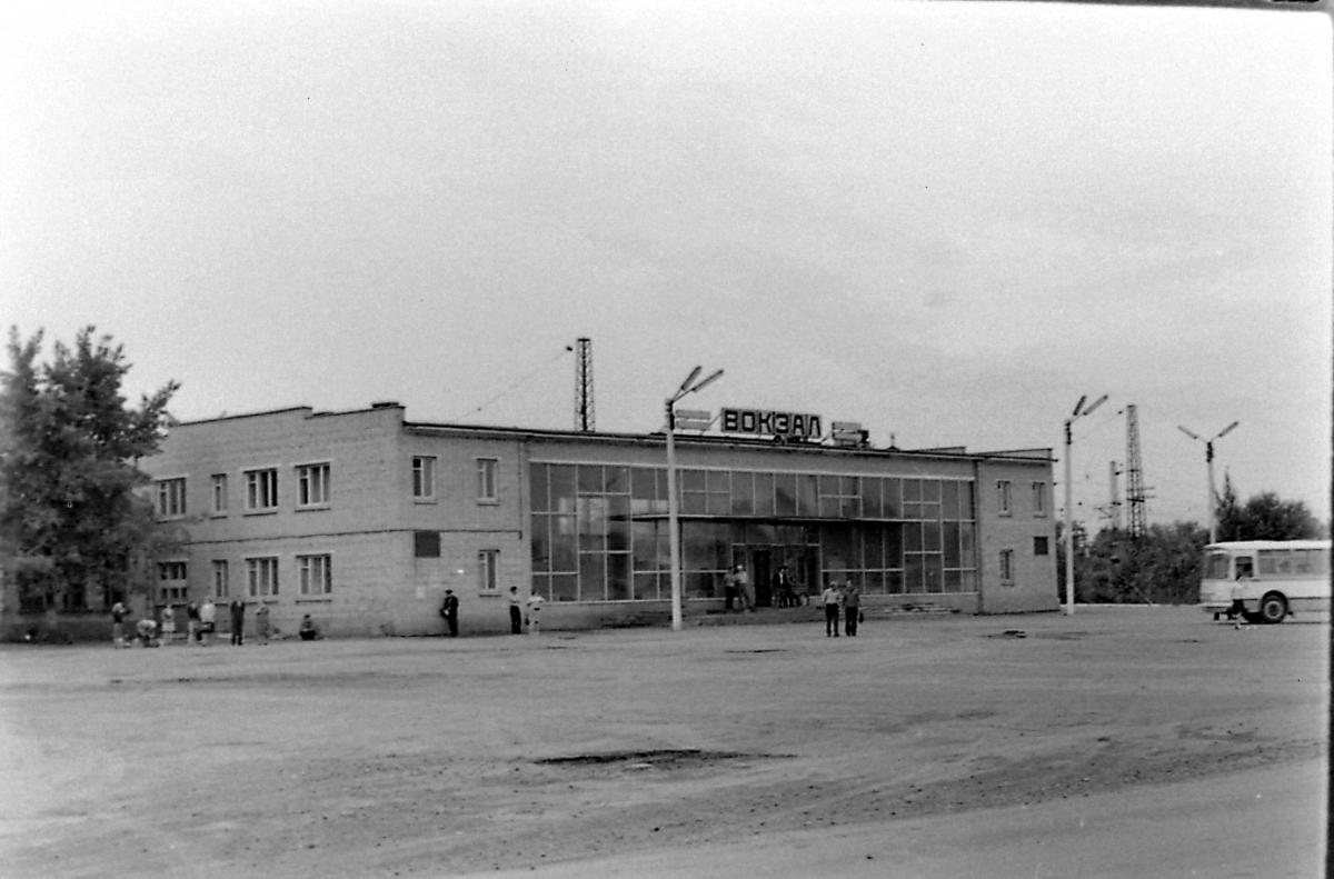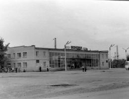 Маленькое строение с треугольным фронтоном в центре визуально было разделено на три части. Это и есть предшественник нынешнего вокзала. В послевоенные годы он гостеприимно встречал нефтяников и буровиков, приехавших осваивать «второе Баку». Для первостроителей города вокзал сыграл роль настоя-щего центра культуры. По окончании трудового дня в 50-е годы все молодое население спешило на привокзальную площадь, где проводились танцы и другие развлекательные мероприятия. Многие старожилы с удовольствием вспоминают те трудные, но счастливые времена.