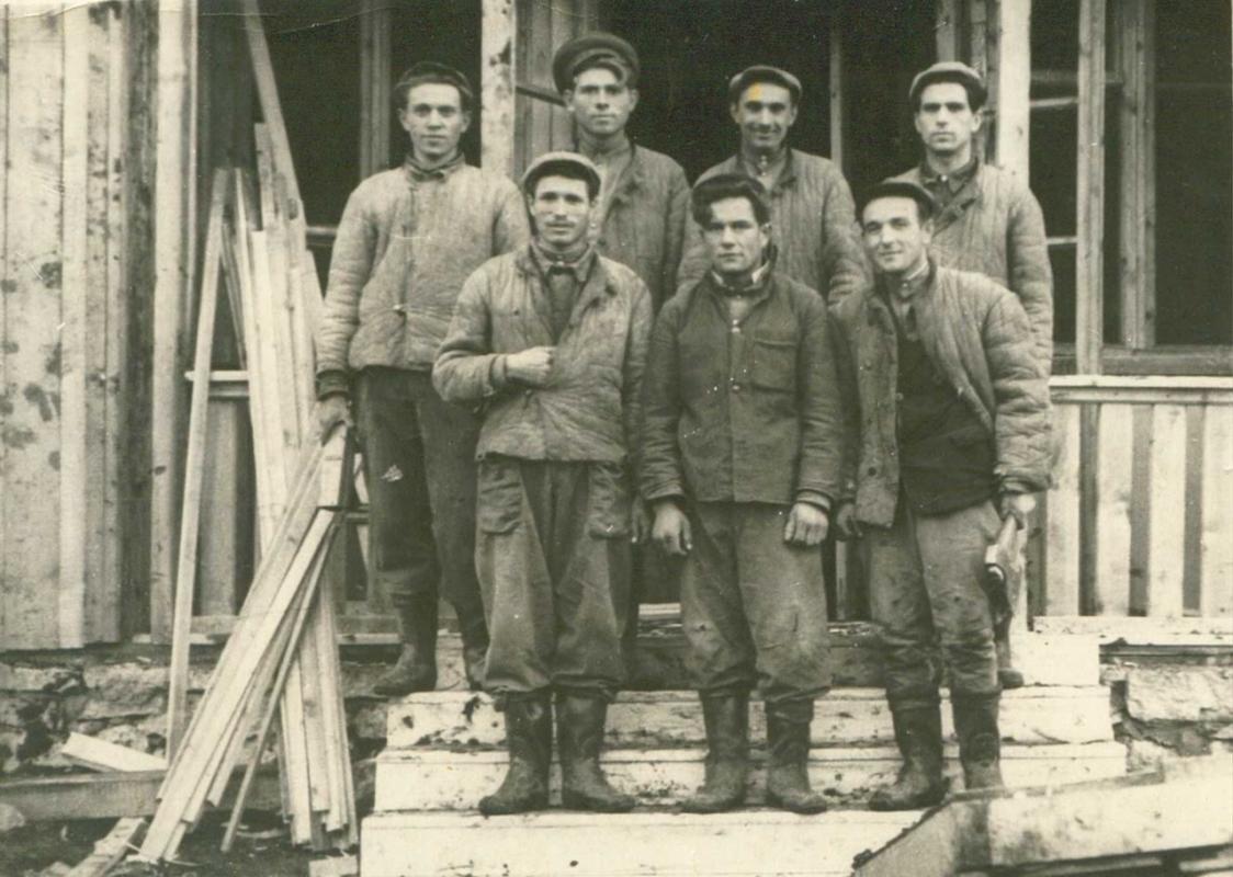 Первые поселенцы – строители приехали в 1946 году. Жили они тогда в старых землянках учебного полигона летчиков, строили первые финские дома. Имена первых строителей – К.К. Энгельгардт, В.П. Галь, В.С. Бугакова, Е.Д. Ларионова, С.С. Носкович.