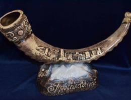 «Рог Изобилия». А это предмет со смыслом. Керамический рог украшен кавказским орнаментом и белыми горами. На подставке надпись: «Прохладный». Но самое интересное — традиция.