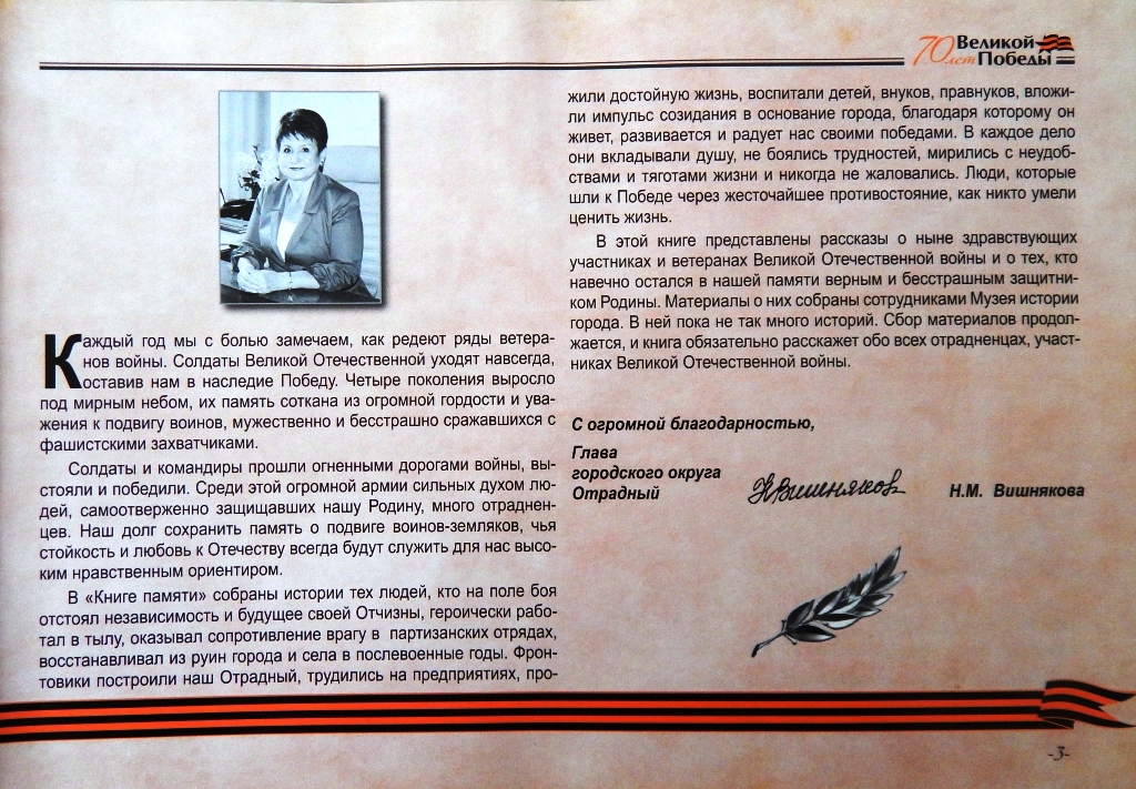 В фондах МБУК «Музей истории города Отрадного» имеются уникальные книги, Книги памяти, при подготовке которых были использованы воспоминания ветеранов Великой Отечественной войны и их родственников, архивные материалы Музея истории города Отрадного, городских газет.