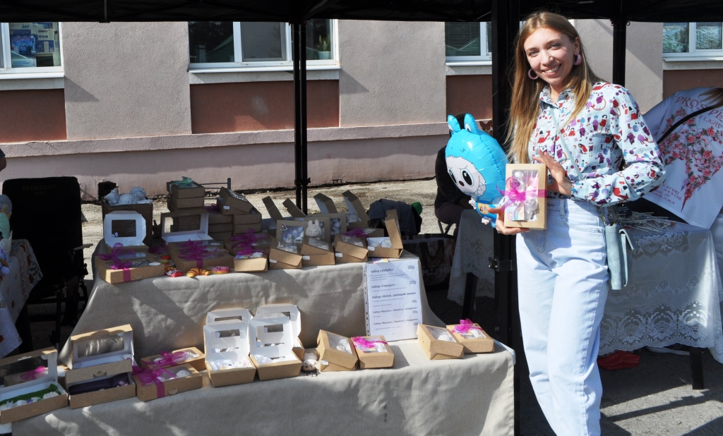 Радовали глаз украшения из бисера и из стразов Банман В.В., тканевые и развивающие книги и игрушки из фетра Ясько И.В., а также интерьерные куклы Кузьминовой Т.В., мыло ручной работы Живовой О.В., сувениры и игрушки из ваты мастерицы Лаптевой М.В., а также сумки, сшитые Антоновой О.Ф.