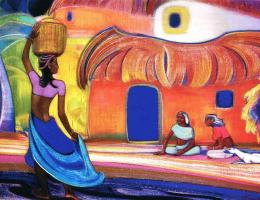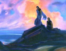 На полотнах Святослава Рериха звучат божественные струны дальних миров, яркие, светящиеся краски. Эти полотна художника нам передают удивительную гармонию миров и повествуют их о реальности и доступности. На его картинах изображены ангелы, гуру, простые индианки, возвышенные до собирательных образов древнего и могучего народа.