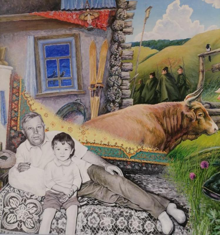 На выставке представлен и портрет дедушки Александра, по рассказам которого художник запомнил, записал и изобразил интересные истории.