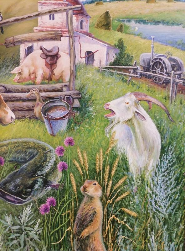 Выставка необычная потому, что рядом с портретами здесь представлена краткая информация о каждом односельчанине художника. Причем истории очень занимательные.А сам Александр рассказывает:" Мне вспоминаются дедушкины рассказы про раньше. Мы так и говорили: «Дед, расскажи про раньше». Помню мы, внуки, облепим его, и он нам рассказывает про свое трудное, военное детство. В войну жили очень тяжело, голодно. Ели лебеду, летом собирали поёмный лук и пекли с ним пирожки, собирали сорочьи яйца. В 1942 году, весной собирали в поле прошлогодние обронные колоски, мололи из них муку на ручной мельнице, пекли лепешки или варили «затируху».