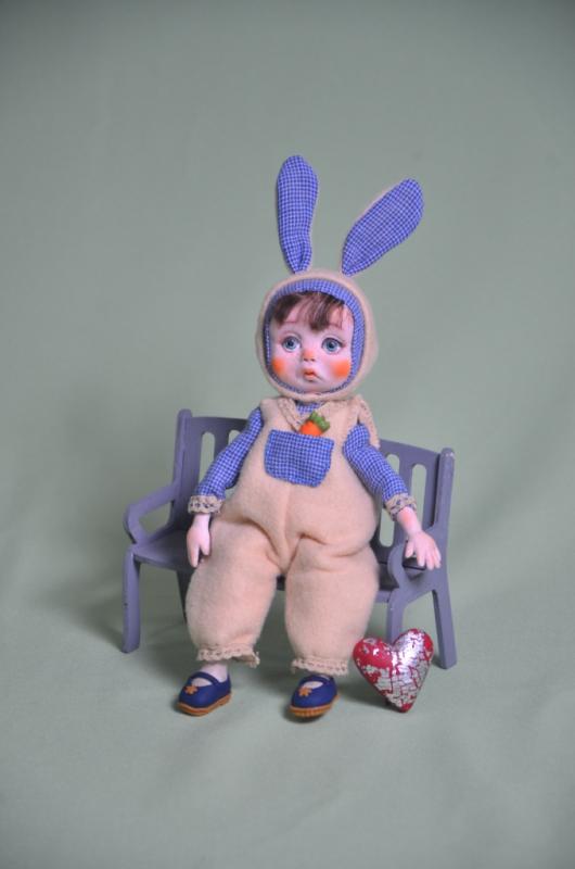 Кукла «Зайку бросила хозяйка». Кто не знает эти удивительные стихи нашего детства. Кажется, что уже невозможно удивить автору зрителей этим образом. Но мы видим огромные, наливающиеся слезами глаза «зайки», разрумянившиеся от огорчения и обиды щечки, опущенные от безысходности ручки. И уже невозможно отвести взгляд и появляется желание помочь этому беззащитному созданию.