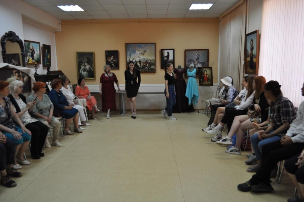 Настоящим подарком для учеников и гостей мероприятия стал показ женских украшений, в технике бисероплетения и гальванопластики руководителя мастерской «Радость творчества» Марины Николаевны Ухиной. Волонтеры музея, студентки Отрадненского нефтяного техникума эффектно прошлись по «подиуму» в красивых женских украшениях, про которые Марина Николаевна рассказала много интересного.