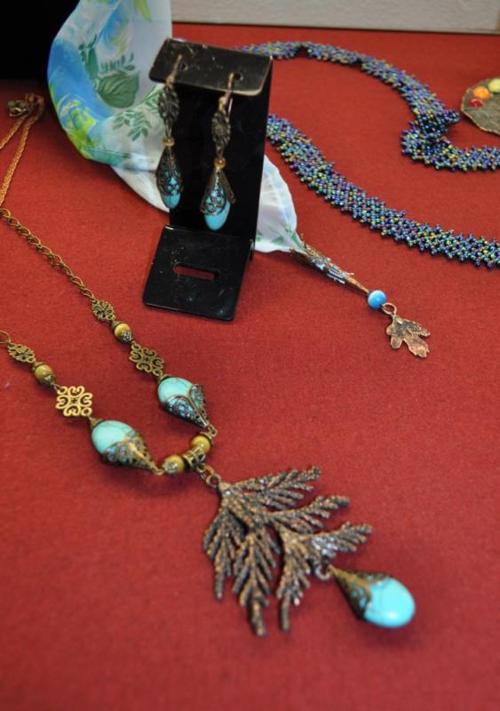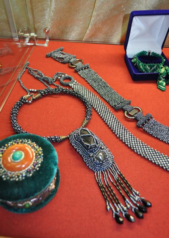 На выставке представлены работы, выполненные в технике бисероплетение, вышивка бисером и в технике современной гальванопластики (омеднения). Стилизованные народные головные уборы, сувенирные шкатулки, декоративные подсвечники и всевозможные женские украшения удивляют разнообразием и безграничной фантазией автора.