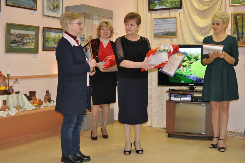 В городском музее проходит очень интересная выставка художников Владимира и Ирины СОЛОВЬЕВЫХ. Она проводится в рамках проекта «Живописный Сергиевский край», который реализуют администрация Сергиевского района, местный историко-краеведческий музей, телерадиокомпания «Радуга-3» и газета «Сергиевская трибуна». Супруги Соловьевы 10 лет живут в маленьком и спокойном селе Нероновка, где ничто не отвлекает их от творчества, а местные пейзажи вдохновляют на создание новых картин. Оба художника очень разноплановые, увлекаются живописью, графикой, керамикой. Владимира также влечет резьба по дереву, лесная скульптура и совсем новое увлечение – шаржи. Его картины покоряют своей неброской красотой. В них нет излишней яркости и пышности, они не похожи на открытки с пасторальным пейзажем. Художник запечатлел на них и хмурое небо, и моросящий дождь, и морозный день. На пленэрах он способен работать часами, не замечая, как листва залетает за ворот или как крепчает мороз. Ирина Соловьева – автор самобытной глиняной игрушки. Любуясь ее работами, тоже можно потерять счет времени. В ее коллекции есть интересные иллюстрации к пословицам и поговоркам: «Купила баба порося», «Своя ноша не тянет», «Баба без разговора, что дом без забора» и др. Притягивают взгляд и герои любимых советских кинофильмов: Екатерина Матвевна и красноармеец Сухов из «Белого солнца пустыни», Шариков из «Собачьего сердца», Паниковский с гусем из «Золотого теленка», Яшка-артиллерист и Гапуся из «Свадьбы в Малиновке». Найдите время, чтобы посетить выставку, думаю, получите большое удовольствие. |