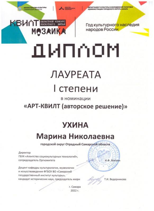 В начале марта 2022 года Самарское Агентство социокультурных технологий при поддержке министерства культуры Самарской области и Департамента культуры и молодежной политики администрации городского округа Самара объявило о начале областного конкурса лоскутного шитья «Квилт-мозаика», посвященного Году культурного наследия народов России.
