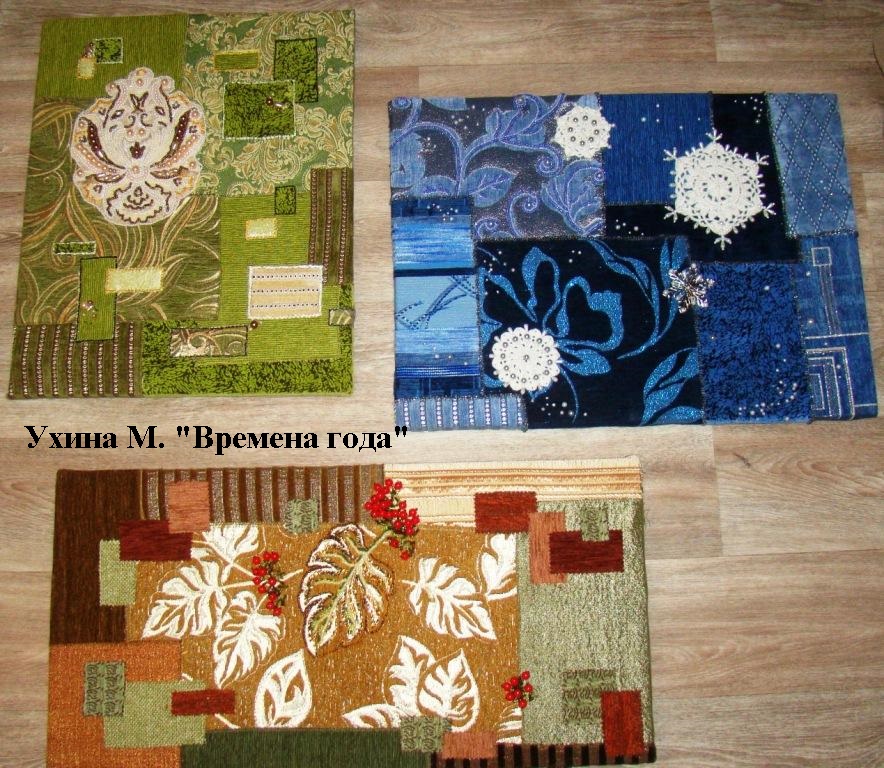 Для наших работ подошла номинация «Арт-квилт» (авторское решение), по условиям которого работы должны были быть выполнены участниками по собственным эскизам в виде панно, одежды, сумок из различных материалов и их сочетаний: текстиль, кожа, войлок, ткань.