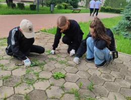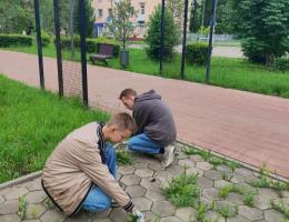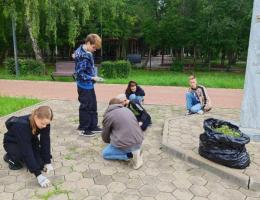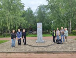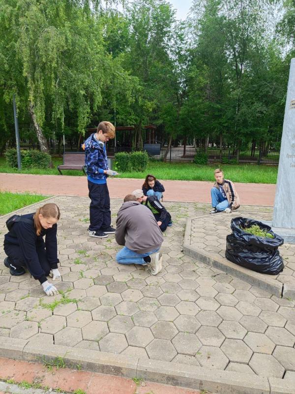 После минуты молчания волонтеры подразделения РМОО «Зеленая планета» - детско – юношеское объединение «Экопомощники» сразу же направились вместес директором музея истории города Отрадного, руководителем РМОО «Зеленая планета» Гурьяновой Г.Т. и руководителем детско – юношеского объединения школы №10 «ОЦ ЛИК» Бурыгиной И.Г. убирать поросль карагача и сорняков с площадки памятного места – обелиска в честь солдат и офицеров Красной армии, пропавших без вести на фронтах Великой Отечественной войны .