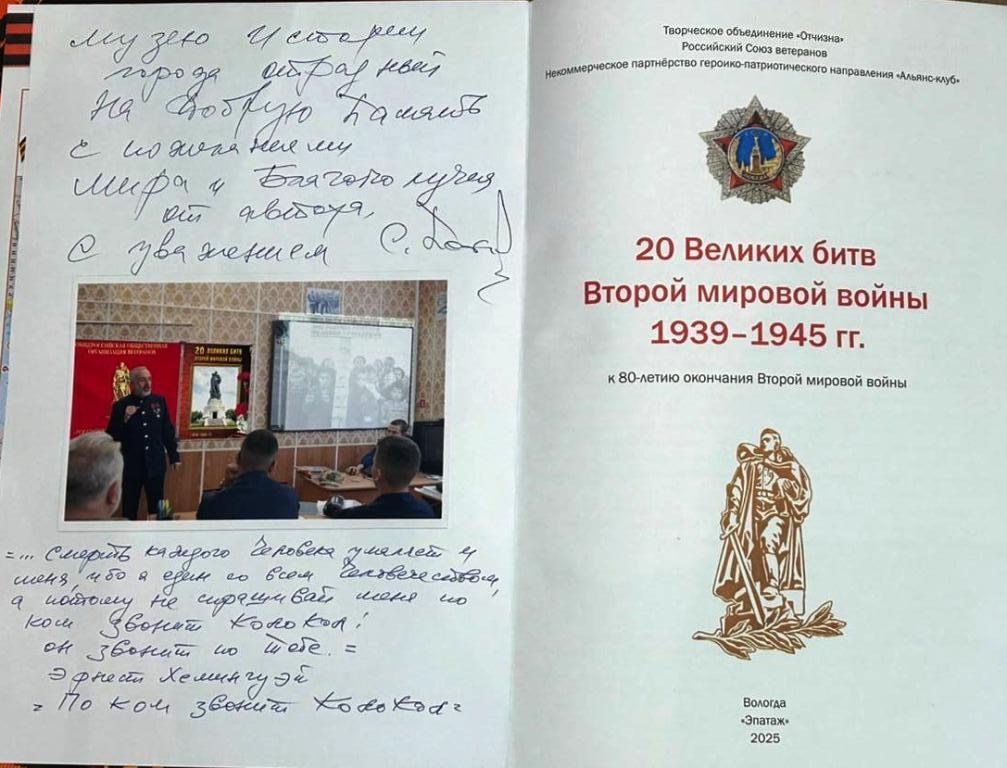 5 июля в музее истории города Отрадного состоялась презентация авторской книги «20 Великих битв Второй мировой войны 1939-1945 гг.».