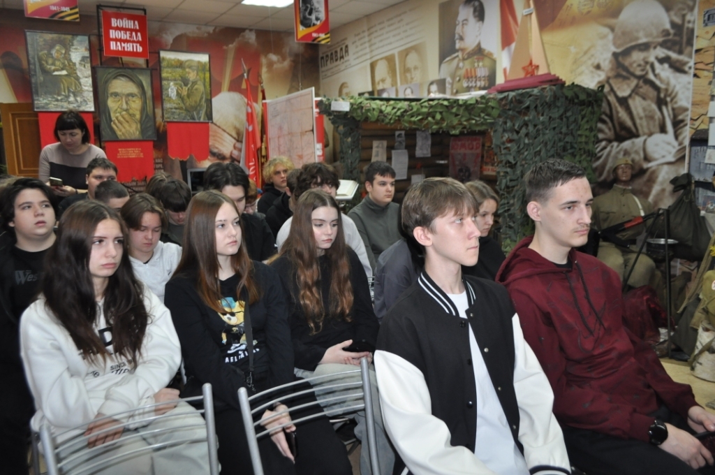 В преддверии 7 ноября - Дня Воинской Славы России, посвященного военному параду на Красной площади 1941 года, в музее проводятся уроки мужества и патриотизма для студентов нефтяного техникума и школьников.