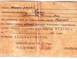 Мой папа, чтобы успокоить свою маму, сорвал полевую ромашку и одну ветку спрятал за козырек фуражки, а вторую отдал матери. Попросил сохранить ромашку и сказал, что эти веточки будут их оберегать. Его мама, Варвара Егорьевна, с этой засохшей ромашкой встречала своего первенца в 1945 году! Он немного схитрил, засушил и принес ей другую ромашку. Его ромашку сожгли вместе с формой, когда привезли в госпиталь с брюшным тифом из-под Сталинграда.