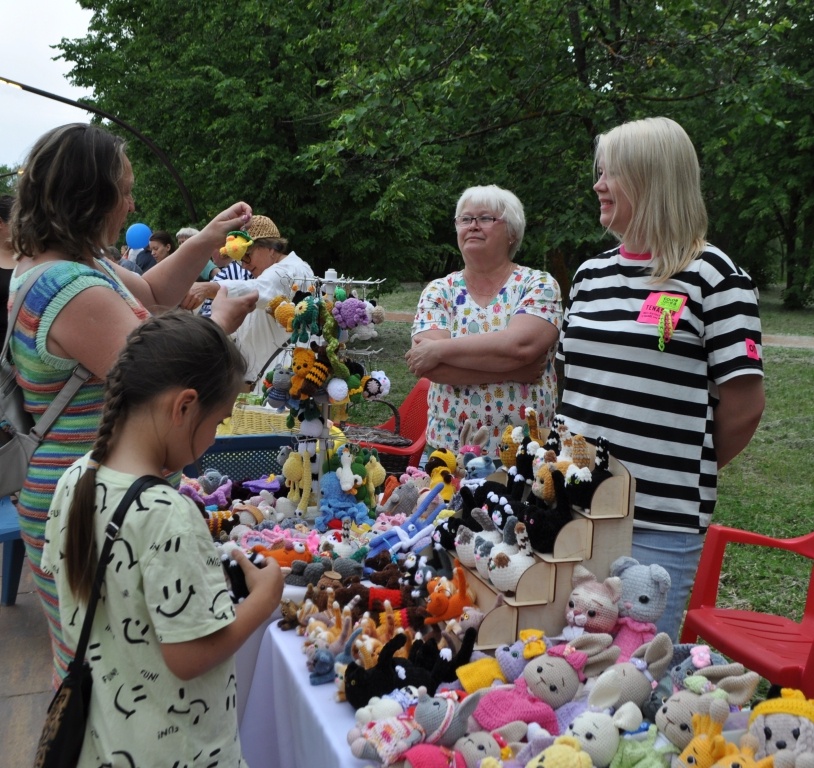 На центральной аллее парка работали друзья музея истории города Отрадного, наши волонтеры культуры. Здесь расположилась выставка «Отрадненский Арбат» мастеров декоративно – прикладного творчества г.о. Отрадный и гостей из Самарской области.