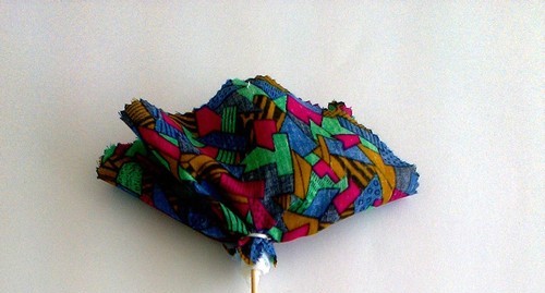 2. Квадрат белой ткани складываем по диагонали, в середину вкладываем палочку.
