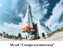 Музей «Самара космическая». Этот музей, один из наиболее молодых в городе, был открыт в 2007 году (фото 2). Самара имеет самое непосредственное отношение к космической отрасли. Именно здесь производят ракеты-носители «Союз», которые выводят на околоземную орбиту спутники и пилотируемые космические корабли. Одна из таких ракет высотой 68 метров, устремленная в небо и будто готовая к взлету, установлена на проспекте Ленина. Ракета «Союз», органично «вписанная» в фасад музейного здания, составляет вместе с ним единый архитектурный комплекс.