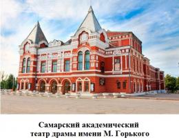 Самарский академический театр оперы и балета (7) был основан в Самаре в 1931 году, а через два года была создана балетная труппа. Театр занимает монументальное серое здание, расположенное на площади Куйбышева и является главной культурной достопримечательностью города на Волге. Здание театра, построенное в стиле неоклассицизма, считается ярким образцом советской архитектуры 30-х годов ХХ века. Оно украшено колоннами, статуями и скульптурными композициями. Большой зал театра рассчитан на 1144 места, Малый зал вмещает до 180 зрителей.