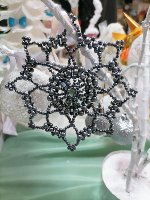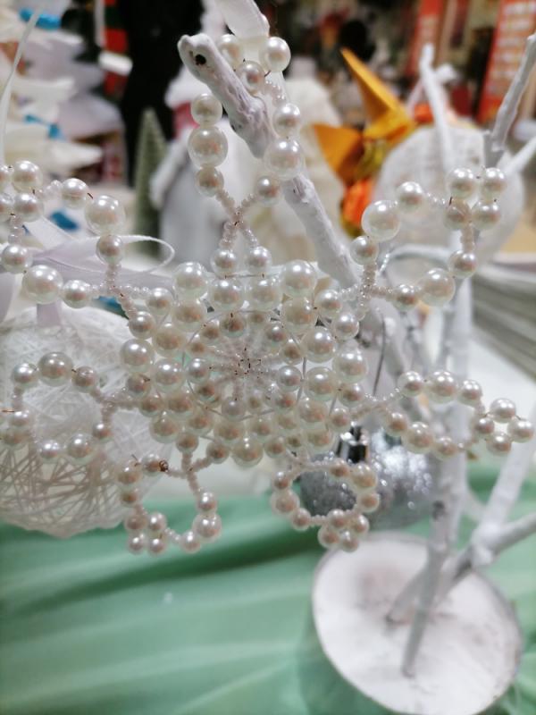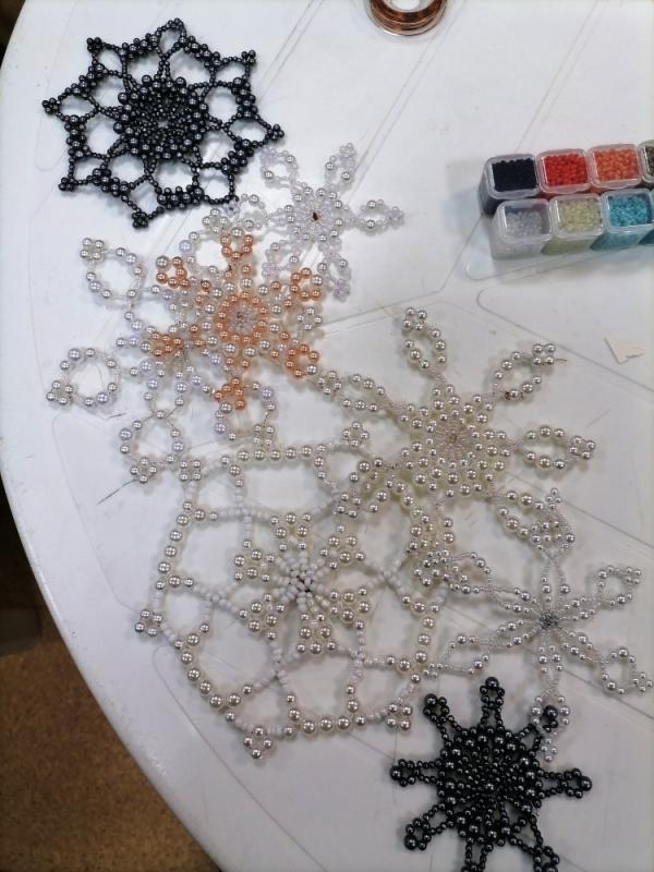 Без ответа это приятное событие не осталось. Участники мастерской решили из бусин, бисера и проволоки сделать красивые снежинки, которыми можно украсить ёлочку или интерьер комнаты. За несколько дней новогодних праздников наша коллекция снежинок была готова. И скоро наш подарок отправится в Москву!