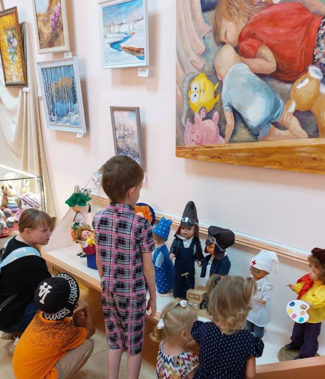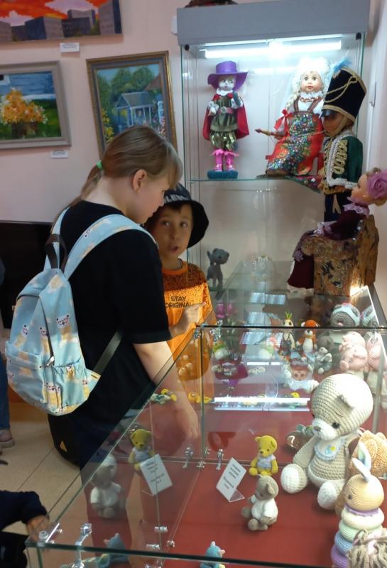 А уже в выставочном зале музея их ждала настоящая сказка. Дети восхищались вязаными игрушками из своих любимых сказок от Алеси Патрикеевой и куклами, одетыми в красивые наряды от Татьяны Соболевой. А как ребята восторженно смотрели на картины Елены Жильцовой, которые их завораживали. Посещение музея оставило у всех положительные эмоции и желание побывать здесь еще раз.