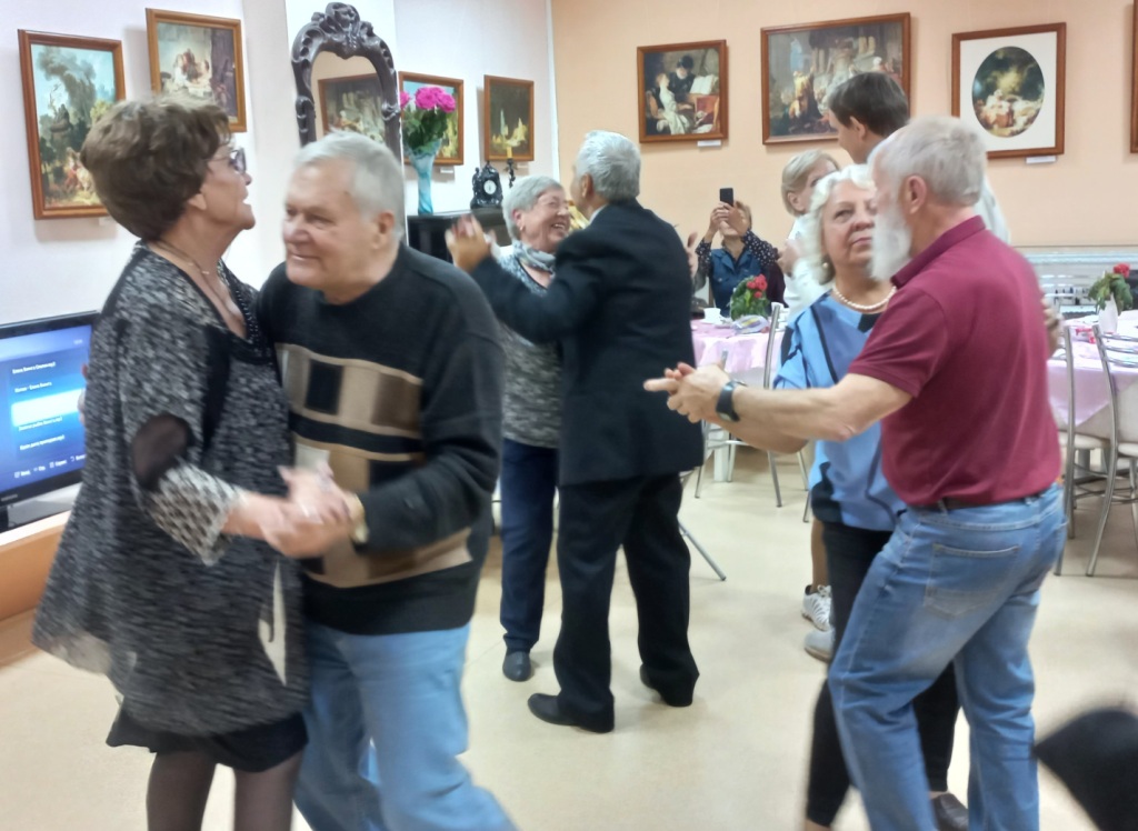 Наши гости вечера очень любят петь и танцевать. Во второй части вечера наши любители поэзии пели и танцевали, да с каким большим удовольствием. Ведь в танце мы находим выражение самых высоких чувств и самых тонких душевных переживаний. С помощью волшебного языка танца можно в одно мгновение очутиться в изумительном таинственном и чудесном мире красоты и вдохновения..