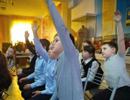 Экскурсовод музея истории города Отрадного Катникова Анастасия познакомила учеников 3 «Б» класса школы № 8 с историей праздника и событиями, которые предшествовали воссоединению Крыма с Россией.