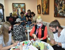 Другая часть посетителей делала кактус из скорлупы куриного яйца под руководством отрадненской художницы Ларисы Гвоздевой. Елена Меренкова учила девушек вышивать бисером.