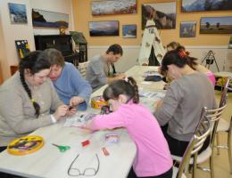 Искренняя благодарность за поддержку/ Современный мир динамичен и полон замечательных ярких красок. Не все эти краски полностью могут ощущать люди с ограниченными возможностями. Но многие из них находят для себя любимое занятие в учреждениях культуры. Сотрудники музея уже пятый год работают с такой категорией людей, у которых есть нарушения опорно– двигательной и речевой системы, есть проблемы зрения и слуха. В 2013 году в музее открылись мастерские, в которых ведут занятия волонтеры и сотрудники музея. Например, в мастерской «Сударушка» ведут занятия и делятся своими знаниями волонтеры Светлана Николаевна Соболева, Наталья Анатольевна Фомина и методист музея Ирина Геннадьевна Верховцева. Экскурсовод Марина Николаевна Ухина руководит мастерской «Радость творчества» на общественных началах. Здесь занимаются дети и взрослые. Участники мастерских «Радость творчества» и «Сударушка» научились многому: кто – то вяжет крючком и спицами, кто – то научился вышивать бисером, делать своими руками украшения, а некоторые научились рисовать в студии живописи и даже демонстрировать наряды, изготовленные своими руками. Они приобщаются к творчеству, приобретают практические умения и навыки, развивают художественные способности, участвуют в различных выставках и конкурсах областного и городского значения. В 2016 году музей принял участие в конкурсе социальных и культурных проектов ПАО «ЛУКОЙЛ». Благодаря выигранному гранту в конкурсе социальных и культурных проектов ПАО «ЛУКОЙЛ», удалось создать для людей с ограниченными возможностями здоровья комфортные условия в мастерских «Радость творчества», «Сударушка» и в открывшейся этногостиной «Отрадушка». Здесь открыты широкие возможности для людей с ограниченными возможностями и у них есть для занятий экран для проектора, швейная машинка, удобные столы и стулья, сшиты народные костюмы … Здесь участники этногостиной учатся с удовольствием увлекательному процессу создания изделий ткачества и ковроткачества, здесь они вышивают, вяжут вещи старославянским орнаментом, пытаются научиться прясть на прялке и веретене. Сохранение, развитие русского традиционного народного творчества, возрождение народных художественных промыслов и ремесел является очень актуальным на сегодняшний день. А учат их всему мастера - профессионалы из села Петровка Борского района Валентина Георгиевна Андреева, Насиба Байрамовна Исмаилова, Татьяна Александровна Панарина, Галина Вениаминовна Цыганкова, Ирина Николаевна Глухова и экскурсоводы музея. В этногостиной «Отрадушка» всегда много желающих приобщиться к русской культуре и мастера – прикладники учат их уважительно относиться к нашим древним традициям. За время реализации проекта «Шаги к успеху» этногостиная «Отрадушка» стала центром возрождения, сохранения и распространения утраченных и редких ремесел, творческой лабораторией. Для обучения участников мастерской разработаны интерактивные занятия, мультимедийные программы, ролевые и интеллектуальные игры, которые очень интересны и привлекательны для всех. Проект «Шаги к успеху» завершил свою работу, но работа в этногостиной продолжается. Занятия в мастерских и в этногостиной – это не только тематические программы, здесь проводятся для них экскурсии, беседы, мастер – классы, выставки 