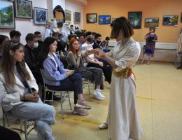 Занимаются в мастерской не только дамы, но и парни. Виталий Валов своими работами восхитил зрителей и вызвал шквал аплодисментов. Элегантная бабочка, красивый галстук и декоративный элемент на джинсовой куртке тому пример. Виталий – призер ежегодного конкурса «Творчество без границ».