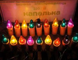 В 60-х годах началось массовое производство гирлянд. Тогда же появилось крепление гирлянд при помощи прищепок. Лампочки ввинчивались в патроны с прищепками, а те крепились на елку. Позднее такая гирлянда известна под названием «Капелька».