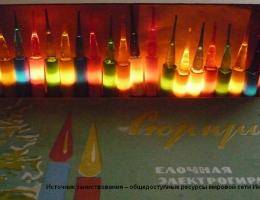Первые гирлянды в СССР выглядели почти кустарными: это были обычные автомобильные лампочки, припаянные к одному проводу, покрашенные лаками и красками. Несмотря на крайнюю простоту, гирлянды «Московского электролампового завода» были необычайно востребованы. Это неудивительно, ведь даже в тяжелые военные и послевоенные годы они несли в себе толику тепла и уюта.