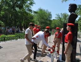 В преддверии Дня России, 11 июня, в городском парке культуры и отдыха на Аллее Славы у бюста участника Великой Отечественной войны, полного кавалера ордена Славы П.М. Лукьянова прошел митинг его памяти. Бюст нашего земляка, героя¬-танкиста, был открыт в прошлом году непосредственно в день государственного праздника нашей страны. Появился он благодаря инициативе региональной общественной организации «Российский союз ветеранов». Ее поддержали глава города А.В. Бугаков, депутат Самарской губернской думы Н.Л. Сомов, депутат городской думы В.Н. Муратов и члены молодежной организации «Зеленая планета». Волонтеры музея истории города Отрадного и РМОО «Зеленая планета" рассказали о подвигах нашего земляка на конкурсе социальных проектов и стали победителями Губернского гранта. Так благодаря совместным усилиям исполнительной, законодательной власти и общественности в нашем городе появилось еще одно памятное место, которое призвано напоминать всем нам о подвигах солдат Великой Отечественной войны. На митинг собрались горожане разных поколений, приехал сын героя Н.П. Лукьянов. Юные отрадненцы в этот день были с ленточками триколора на груди, которые им вручили волонтеры ПЦ «Пламя». Приветствуя собравшихся, заместитель главы города по социальной политике Игорь Хохлов отметил символичность проведения данного мероприятия накануне Дня России, ведь этот праздник ¬ дань уважения и признания ратных подвигов наших дедов и прадедов, чье мужество и героизм заложили основы российской государственности. Приглашенный на митинг священнослужитель Андрей Малахов, обратившись к юному поколению, сказал: «Для каждого из нас Родина начинается с того дома, в котором живем, с той семьи, в которой растем, и с той земли, на которой родились. Поэтому мы должны любить это место, украшать его и окружать вниманием, чтобы потом заботиться о всей стране. У таких героев, как П.М. Лукьянов, надо учиться, как жить и любить Родину». От имени большой семьи Лукьяновых, а у Прокофия Максимовича было 6 детей, слова благодарности за внимание к памяти отцу выразил его сын Николай Прокофьевич. Герой¬-танкист П.М. Лукьянов прошел фронтовыми дорогами через всю войну. Участвовал в боях под Сталинградом и на Курской дуге, освобождал Украину и Белоруссию, громил врага в Восточной Померании, в районе городов Штальп и Данциг. Получил четыре тяжелых ранения и три контузии. За преданность воинскому долгу, образцовое выполнение боевых заданий в борьбе с немецкими захватчиками и проявленные при этом доблесть и мужество гвардии старшина Лукьянов награжден орденами Славы 1¬й, 2¬ой и 3 степени. После войны восстанавливал колхозы в Похвистневском и Кинель¬-Черкасском районах, последние 10 лет жизни прожил в Отрадном. Присутствующие почтили память полного кавалера ордена Славы минутой молчания и возложили к памятнику цветы. На пост № 1 у бюста героя¬-танкиста встали юнармейцы Отрадного.