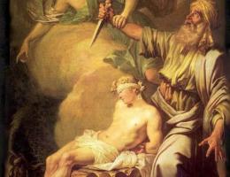 Антон Павлович Лосенко (1737-1773) известен как художник исторического жанра, в творчестве которого не обошлось без библейских сюжетов. Картина «Жертвоприношение Авраама (Авраам приносит в жертву сына своего Исаака)» создана в 1765 г., находится в Государственном Русском музее в г. Санкт-Петербург.