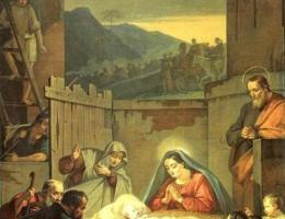 Василий Кузьмич Шебуев (1777-1855) написал картину «Рождество Христово» в 1847 г. для Благовещенской церкви Конногвардейского полка в Петербурге. В ней мы видим легендарное поклонение пастухов младенцу Христу.