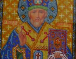 На выставке «Вышитое чудо» в первую очередь привлекают внимание иконы Елены, вышитые бисером. Их много и они вышиты аккуратно, в красивом колорите, грамотно оформленные в багет. По словам Елены, для душевного спокойствия после смерти матери она увлеклась вышивкой бисером икон.