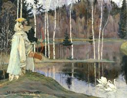 Михаил Нестеров изображает русскую природу без использования ярких оттенков, она лишена внешней эффектности и очень лирична. Пейзаж в его произведениях имеет собственное настроение, созвучное настроению героев картин.