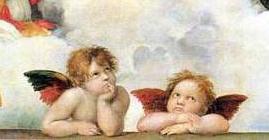 «Сикстинская Мадонна» (фото 3) отнюдь не случайно изображена в полный рост. Она выходит к людям, как на сцену. Крупного младенца держит легко. Она уже поняла, что должна отдать Его, что Он не принадлежит ей всецело. Во всём её облике - решимость. Она не всматривается в каждого из нас отдельно, как «Мадонна в кресле». Она смотрит прямо и как бы сквозь нас, словно не придавая значения ни одной персоне, какой бы значительной в мире людей она ни была.