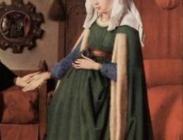 Фламандский живописец раннего Возрождения Ван Эйк написал «Портрет Джованни Арнольфини и его жены» (фото 2,3), дающий вполне ясное представление о беременности молодой супруги. Женщина придерживает перед собой длинный шлейф платья, призванный с одной стороны, продемонстрировать зажиточность супружеской четы, а с другой, скрыть выступающий живот. У Яна Ван Эйка в картине «Портрет четы Арнольфини», супруги трогательны, но полны достоинства и сознания величия момента, здесь и смущение и тихая гордость - эти яркие примеры искусства без лишних пояснений говорят о притягательности ожидания материнства для творчества художников.