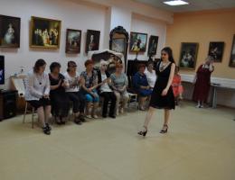 Настоящим подарком для учеников и гостей мероприятия стал показ женских украшений, в технике бисероплетения и гальванопластики руководителя мастерской «Радость творчества» Марины Николаевны Ухиной. Волонтеры музея, студентки Отрадненского нефтяного техникума эффектно прошлись по «подиуму» в красивых женских украшениях, про которые Марина Николаевна рассказала много интересного.