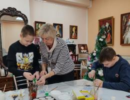 5 января 2025 года во время новогодних каникул в музейной мастерской собрались дети и взрослые на мастер – класс «Рождественские украшения», который подготовила и провела наш давний друг, член Совета музея Харитонова Елена Петровна.