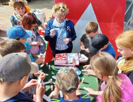 На стации «Музыкальная» волонтер культуры Стебенюк И.В. играл на флейте гимн РФ, песни «Катюща», «Смуглянка», «День Победы», «В землянке», а ему дружно подпевали взрослые и дети.