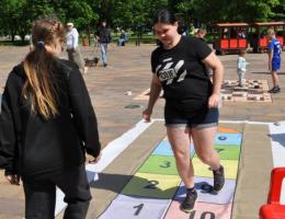 А на станции «Игровая» всем было очень весело. На напольной шахматной доске шли настоящие соревнования, а рядом девочки и даже мальчишки прыгали в классики, играли в различные народные игры.