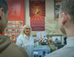 "Осталась одна Таня..." Трагичная история школьницы Татьяны Савичевой, ставшая одним из скорбных символов блокады, напомнила студентам о военных событиях. Дневник девочки лёг в основу новой экспозиции, а судьбу её и других жителей осажденного города в красках поведала член Совета музея и наставник молодежи Тамара Митяева.