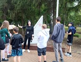А затем воспитанники реабилитационного центра уже в сквере Победы прошли по аллее «Фронтовые письма», читали строки из солдатских писем, узнали об истории создания стелы «Фронтовые письма». Также ребята узнали много интересных фактов о танке Т- 64 А.