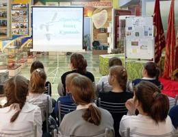 Экскурсовод Катникова А.А. провела ребят по тропам истории, рассказала о зарождении этого трогательного праздника, о народном поэте Дагестана Расуле Гамзатове, чьи строки подарили миру бессмертную песню «Журавли».