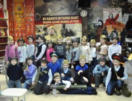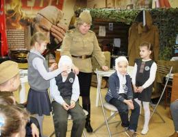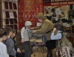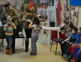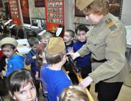 Юные посетители нашего музея во время познавательно - патриотической программы "Школа разведчиков "Патриот" могут померить гимнастерку и каску, надеть солдатские сапоги, подержать в руках автомат, рассмотреть гранату.. Эта часть интерактивной программы приводит в восторг и мальчишек, и девчонок.